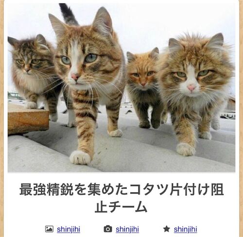 ‪最強精鋭を集めたコタツ片付け阻止チーム #ボケて ‬ ‪ http://bokete.jp/boke/48759272‬ 最強精鋭を集めたコタツ片付け阻止チームをこっそり見学する #ボケて http://t.co/M0hhjY4DRu