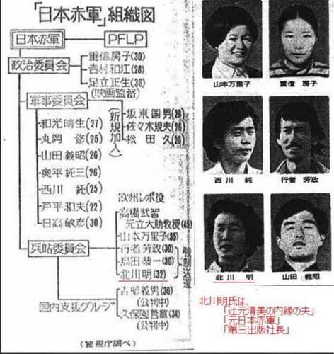 「日本赤軍」組織図 重信房子 はイスラエルで26人も殺した女で今年、刑務所から出てくる! 北川明 は #立憲民主党 #辻元清美 の内縁の夫 警視庁 調べ