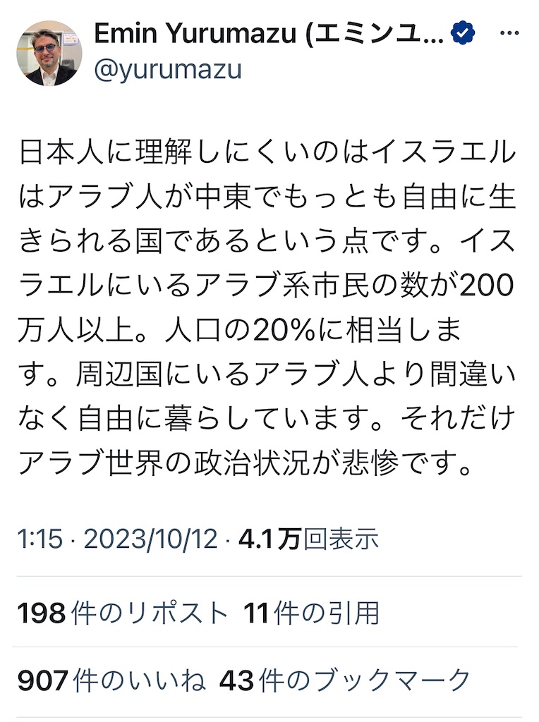 イスラエルにはイスラム教徒のアラブ人、アラブ人の議員、アラブ政党(15議席)まで存在する